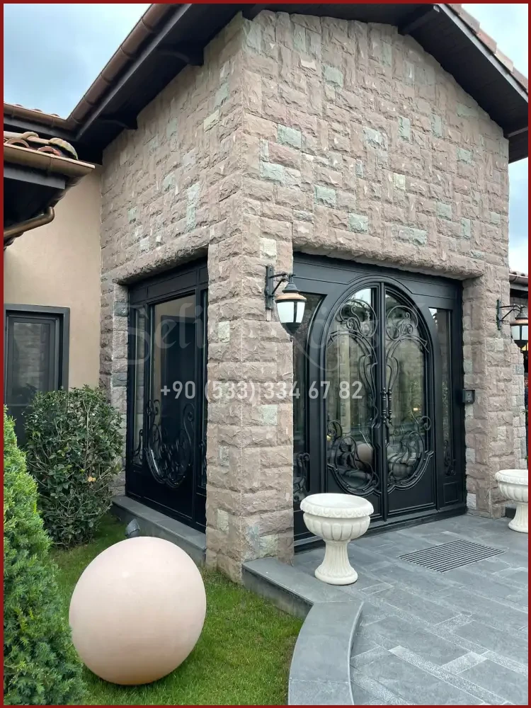 Minimalist villa kapılarında kullanılan aksesuarlar da göze batmayacak şekilde tasarlanır. Kapı tokmağı, kilit ve menteşe gibi parçalar yüzeyle bütünleşik tasarıma sahiptir. Bu da göz yormayan, sade bir şıklık sunar.