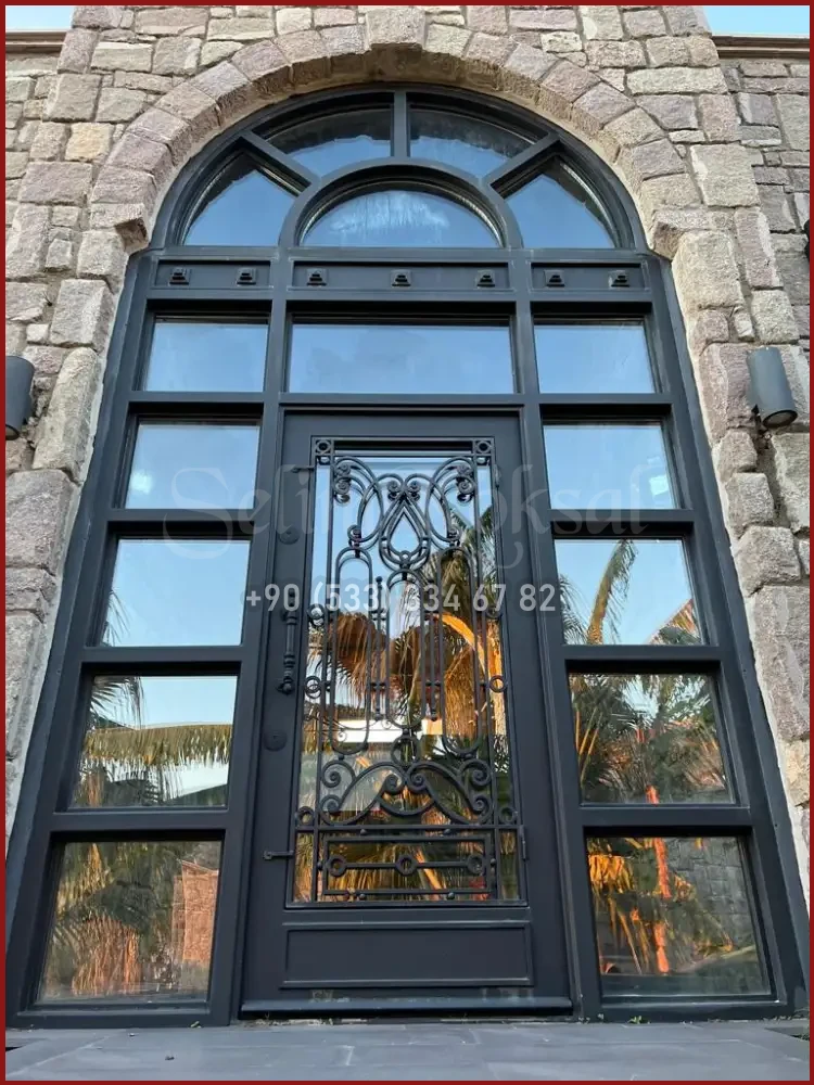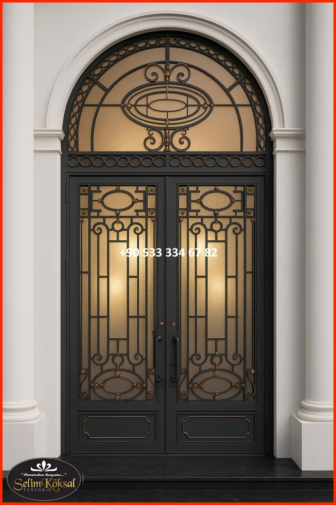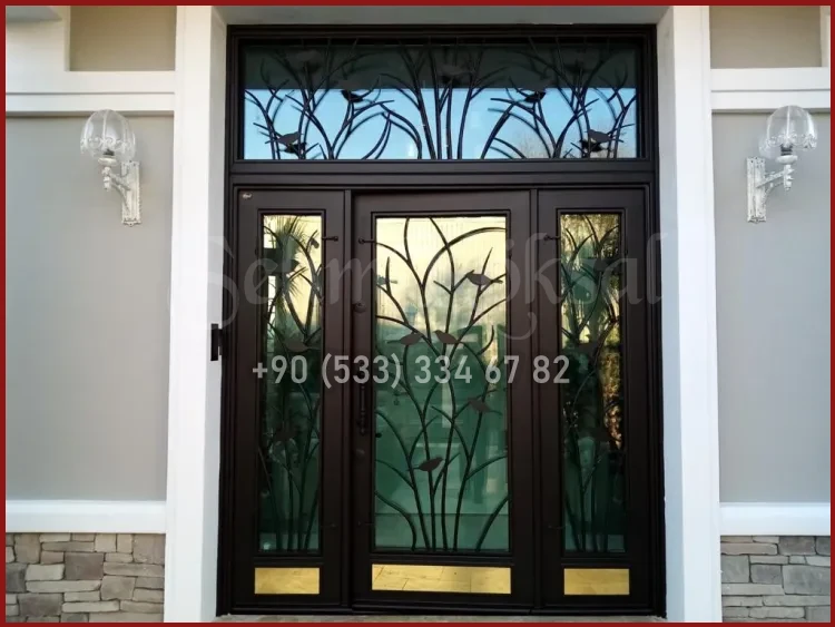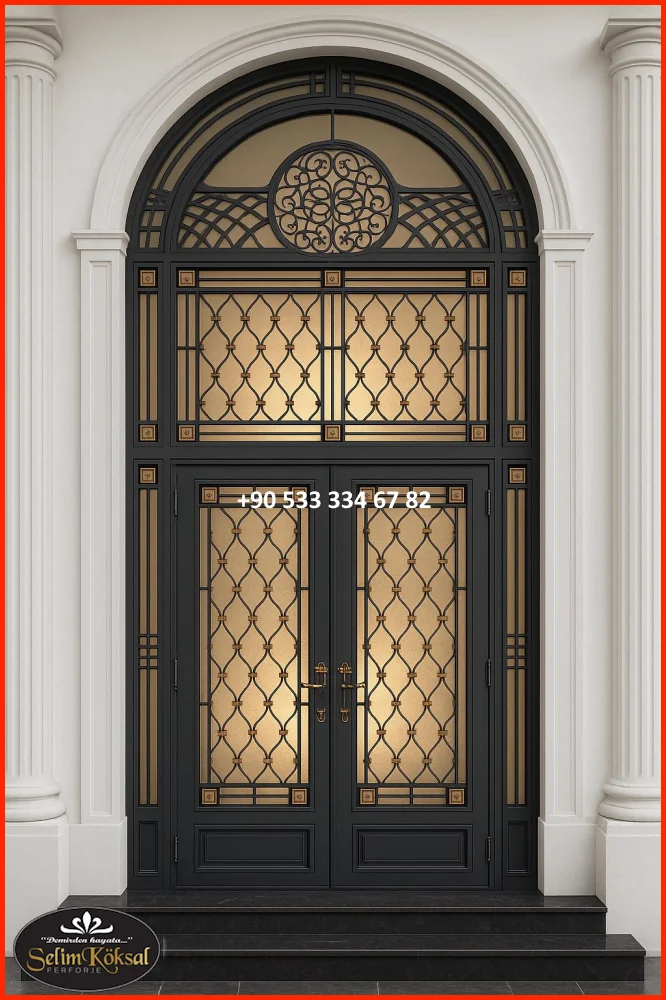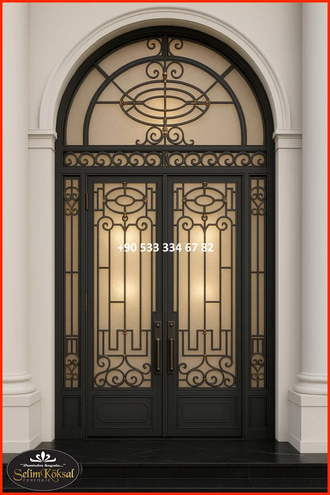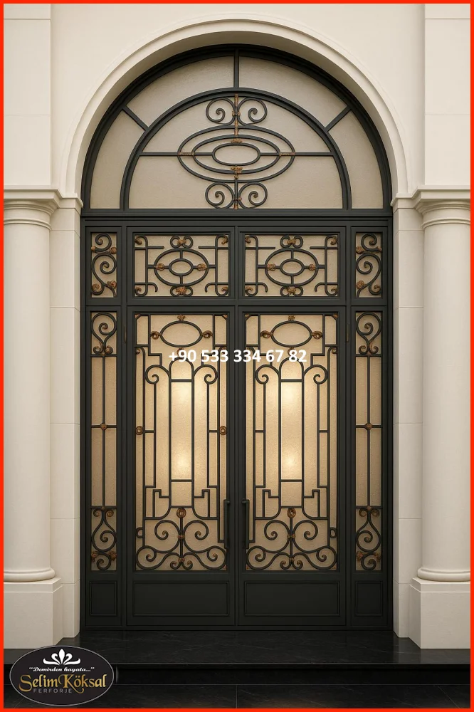Kapıya entegre edilen dar cam paneller, hem gün ışığını içeri alır hem de tasarımı bozmadan modern bir katkı sağlar. Buzlu cam, çizgisel cam şeritler veya yatay cam detaylar tercih edilir.