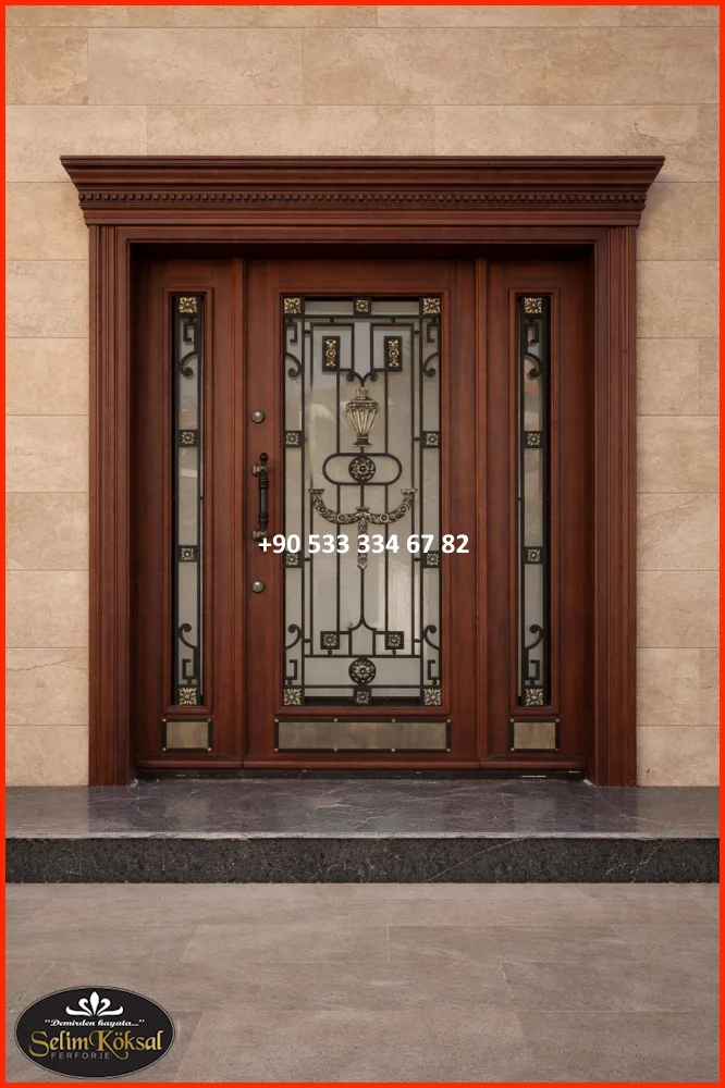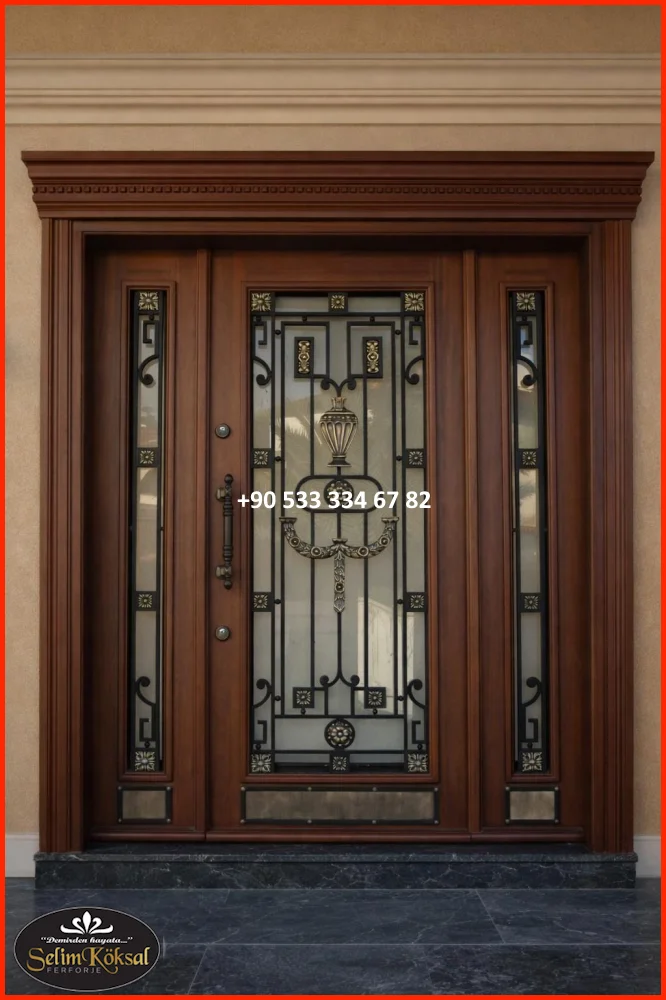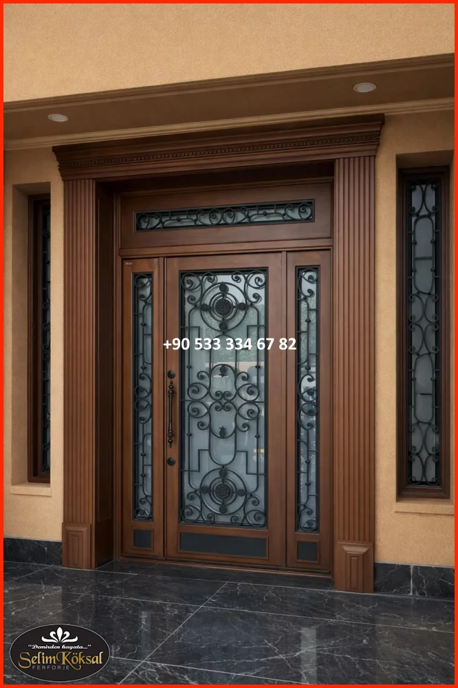 Kapıya entegre edilen dar cam paneller, hem gün ışığını içeri alır hem de tasarımı bozmadan modern bir katkı sağlar. Buzlu cam, çizgisel cam şeritler veya yatay cam detaylar tercih edilir.